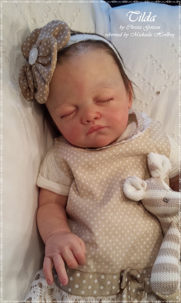Eine weitere Leidenschaft von mir ist das Rebornen von Puppen. Hierfür kaufe ich von entsprechenden Künstlern den Vinyl-Rohling, welchen ich dann in einer speziellen Technik bemale und zusammenbaue.