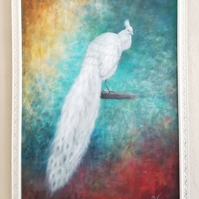 Pfau, Acryl auf Leinwand, 75x115 cm, gerahmt 450 €, ungerahmt 320 € -