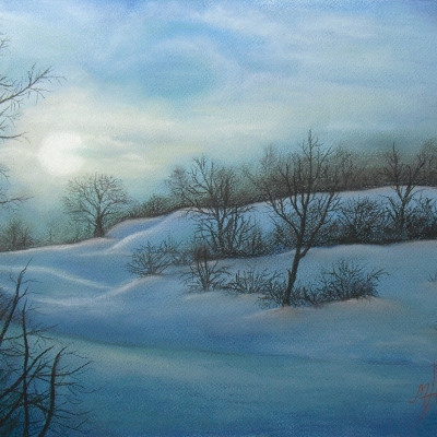 Abendliche Winterlandschaft in Helbra / Pastellkreide / 130 ,- € -
