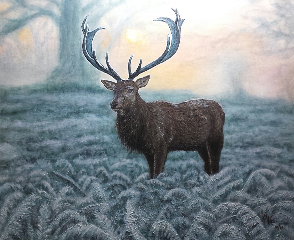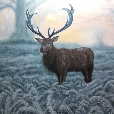 Hirsch im Winter, Acryl - Strukturpaste auf Leinwand, 60 x 80 cm, 320,-€ -