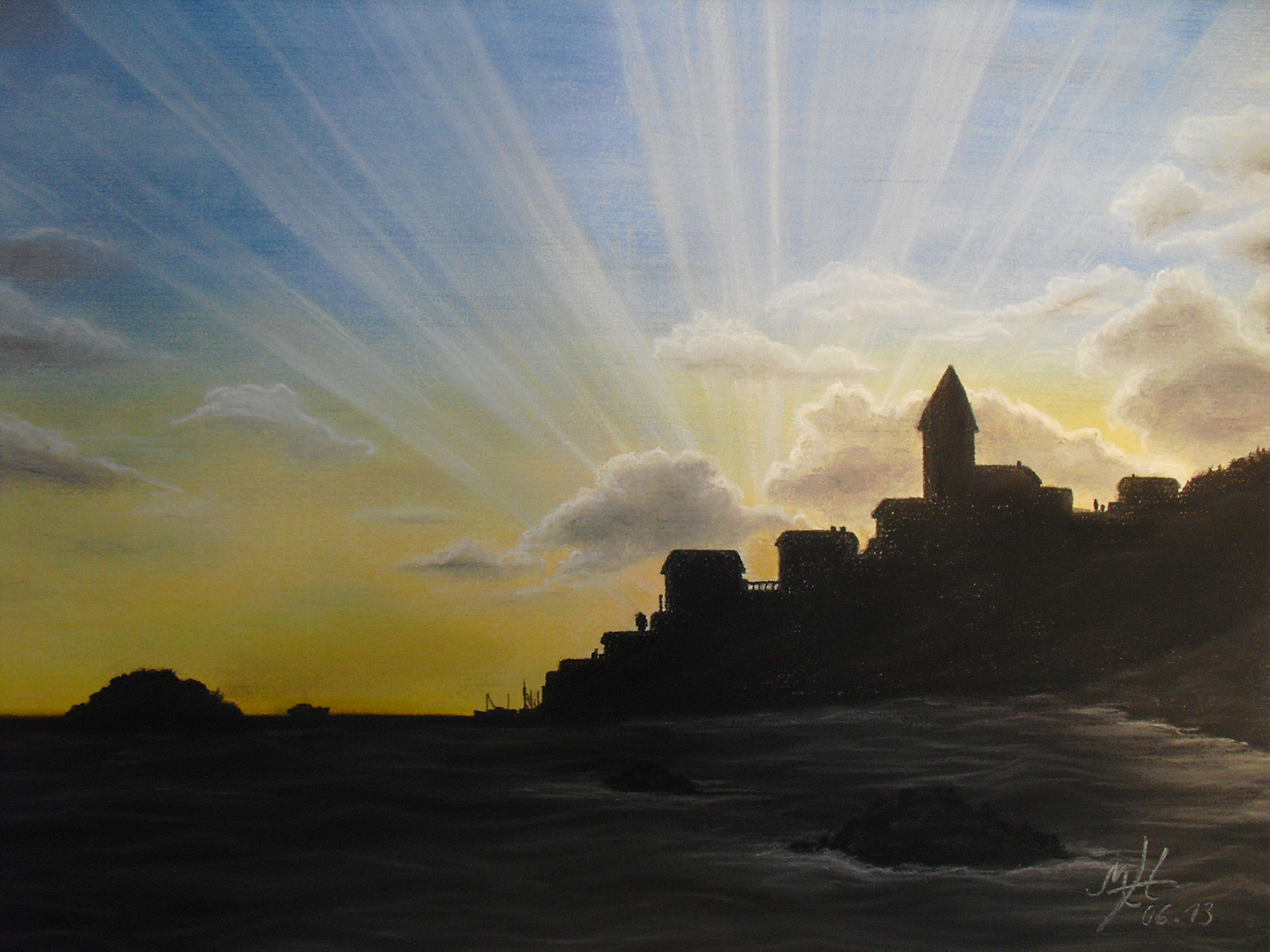 Sonnenuntergang in Kroatien / Pastellkreide / 120,- € -